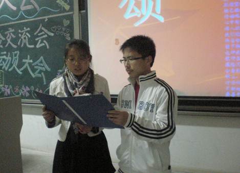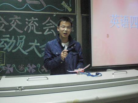 “学习经验交流暨英语四级动员大会”正式拉开帷幕。张晖老师对开学至今的学习情况进行总结后,在一片掌声中来自08级的何运超同学就英语学习谈了自己的心得体会,他说,保持良好心态、掌握正确学习方法,以及合理安排时间学习等,都是学习英语的诀窍。接下来,07级学长、西安工业大学“十佳大学生”侯志松介绍了在搞好学习的基础上参加各种社会活动的必要性,重点强调了专业知识、个人能力和综合素质在大学学习中的相互作用。07级学生、国家奖学金获得者朱文静则介绍了认真完成课后作业和参加实验的重要性。08级学生、国家奖学金获得者马驰对同学们关于学习之外生活的建议也让大家受益匪浅。毕庆、马丽娜、史向荣等学长亦依次就大学学习和生活等诸多问题做了精彩发言。整场大会,10级新生纷纷就自己关心的诸如学习、生活、择业及未来发展等问题与学长们进行了深入交流,气氛热烈而激昂。