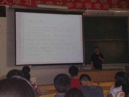 本学期,06级同学都致力于毕业设计,在这最后的设计冲刺阶段,大家都在努力完成最后的一道工序——毕业论文的撰写。通过本次讲座,使正处在论文后期完成阶段的毕业生获得了很大帮助,将对毕业生的论文撰写起到指导作用,能够增加论文的完整性和严谨性。老师们也进一步了解了科技论文撰写的方法和要点,有助于提高论文的写作水平。