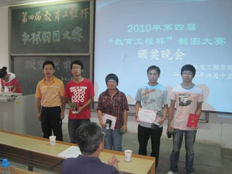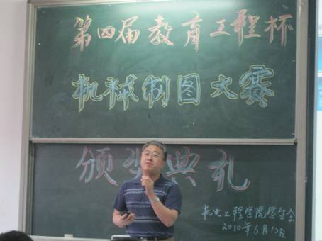 晚上七点整,主持人宣布颁奖典礼开始,并介绍了活动内容以及流程,接下来张晖老师作了简短的致辞。典礼进入颁奖阶段,共有12位参赛选手脱颖而出,获得了本次大赛的奖励。12位获奖选手上场的领奖将颁奖活动推上了高潮。计算机绘图一等奖冯龙波同学浅谈了他的获奖感言及学习心得。最后高佳宏老师发表了对本次大赛的看法,而且还为现场的同学作了许多关于工程制图疑问的解答。高老师的回答不时赢得同学们阵阵掌声。在这一阵阵的掌声中本次颁奖晚会圆满落幕,也为本次制图大赛画上了一个圆满的句号。