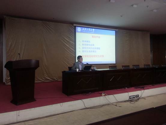院长王建华教授分别从他们的研究方向、科研团队、科研成果以及学科发展几个方面进行了详细介绍。随后机械工程学科其他团队负责人就自己的研究方向也向同学做了详细介绍。最后研究生部王恒老师就我校的考研政策及报考相关要求进行了讲解。
