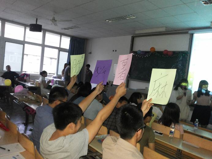 决赛于5月13日在教2-301举办,共分为风采展示,知识问答,接歌词三个环节。