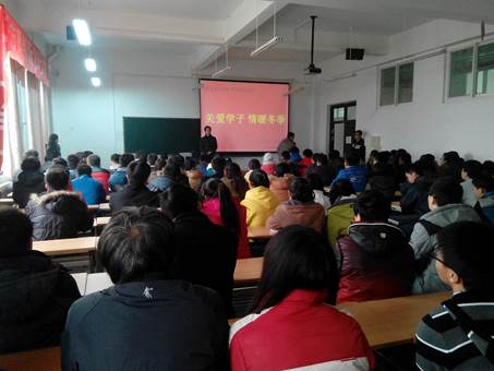 会上,主管资助工作的张晖老师首先对贫困生表达了寒冬的关怀和新春的祝福。他说,学校一直以来高度重视贫困生的助学工作,开展勤工助学、四级阳光培训、贫困补助等活动,让家庭经济困难的学生感受到学校的温暖,摆脱困扰,发奋学习。这份温暖是国家、社会、学校给同学们的一点爱心。希望同学们一定要珍惜这份温暖并常怀感恩之心,要用实际行动来回馈于社会、回馈于学校、回馈于父母,努力学习,证明自己,做国家的有用人才。