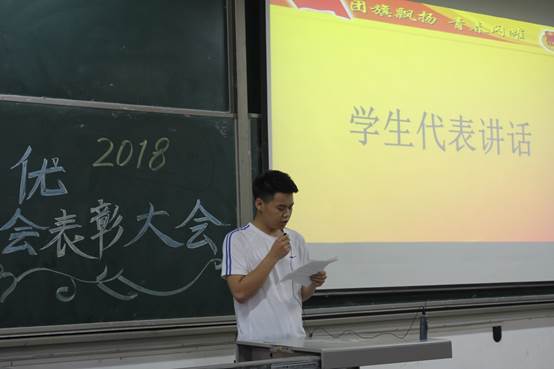 大会第三项,优秀学生代表贾晨伟上台发言,表达了严格要求自己,坚定学习信念,努力成为全面发展的人才的坚定决心。