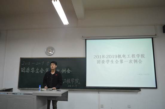 2018年10月16日21:20,机电院团委学生会在工科2号楼502室成功召开第一次例会。前学生会主席陈鑫、团委副书记杨洪、学生会主席史宇等参加了本次会议。