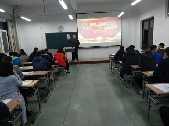 接下来学生第三党支部书记薛鹏老师对在座的各党支部成员进行集中培训,解读了《陕西省发展党员工作流程(试行)》。详细讲解了从党员的发展条件、写入党申请书的时间、推优过程、积极分子及发展对象的确定、上支部大会讨论通过成为预备党员、到最终一年考察期结束如何转正的一系列党员发展流程。让学生们明确知道入党所具备的条件和应有的流程。