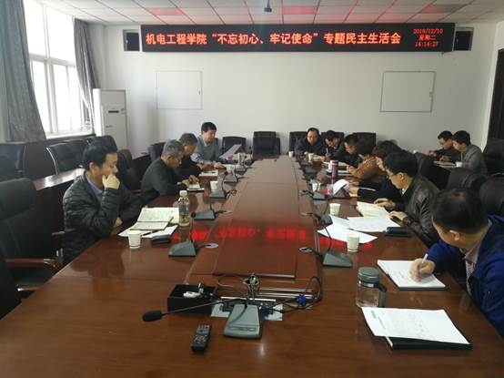 召开“不忘初心、牢记使命”专题民主生活会,校党委委员副校长刘卜、“不忘初心、牢记使命” 第二督导组成员任学敏出席会议,学院领导班子成员、党委委员参加,师生党支部书记、院工会代表、学生党员代表列席。党委书记路金龙主持会议。