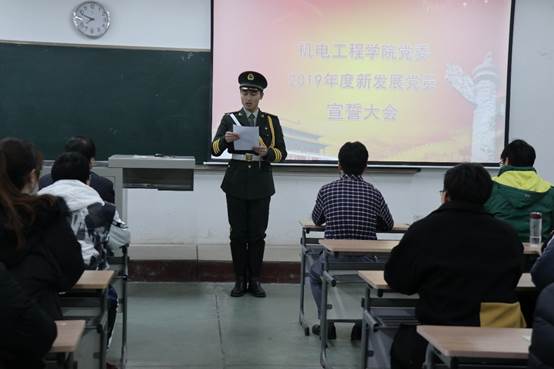 党委书记路金龙、副书记姚敏茹、组织委员张晖、学生党总支副书记薛鹏、部分学生党支部书记和2019年度发展的预备党员参加大会。