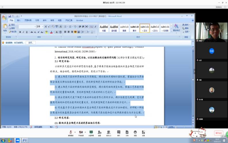 今年参加国基金申报的老师们参加了本次视频讨论。