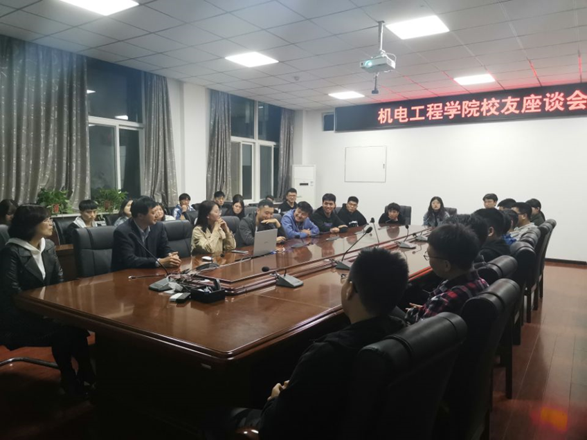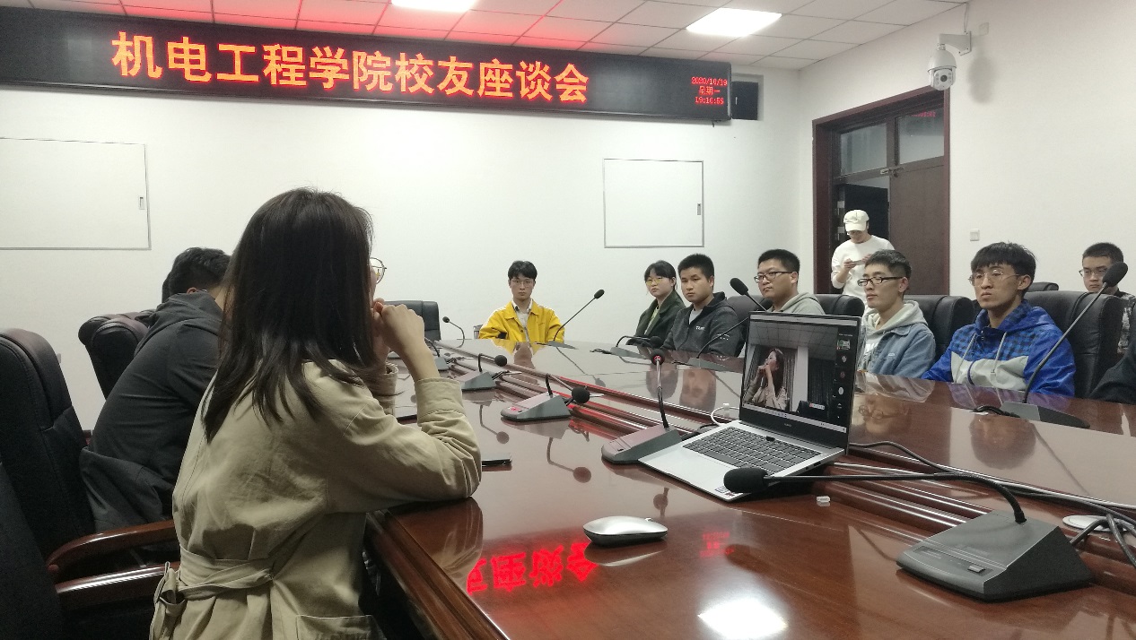 大会伊始,薛鹏介绍了校友汪梅梅的个人基本情况和学习经历。会议中,汪梅梅主动分享了自己的招聘经历和工作心得,对学弟学妹提出的问题进行答疑。她指出,每个人都应当对工作有自己的理解和认识,只有在实践中总结出自己的工作方法,才能在岗位上走下去。只要坚持,就一定会有收获。她强调,思维建设和人际交往能力非常重要,我们应当努力提升自我修养,丰富专业知识,抓住机遇,成就未来。座谈会最后,路金龙发表总结,表达了对校友工作后回归母校分享经验的感谢,对机电学生就业前景的美好期望。会议结束,由姚敏茹作为代表向校友赠送礼物。