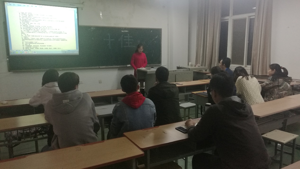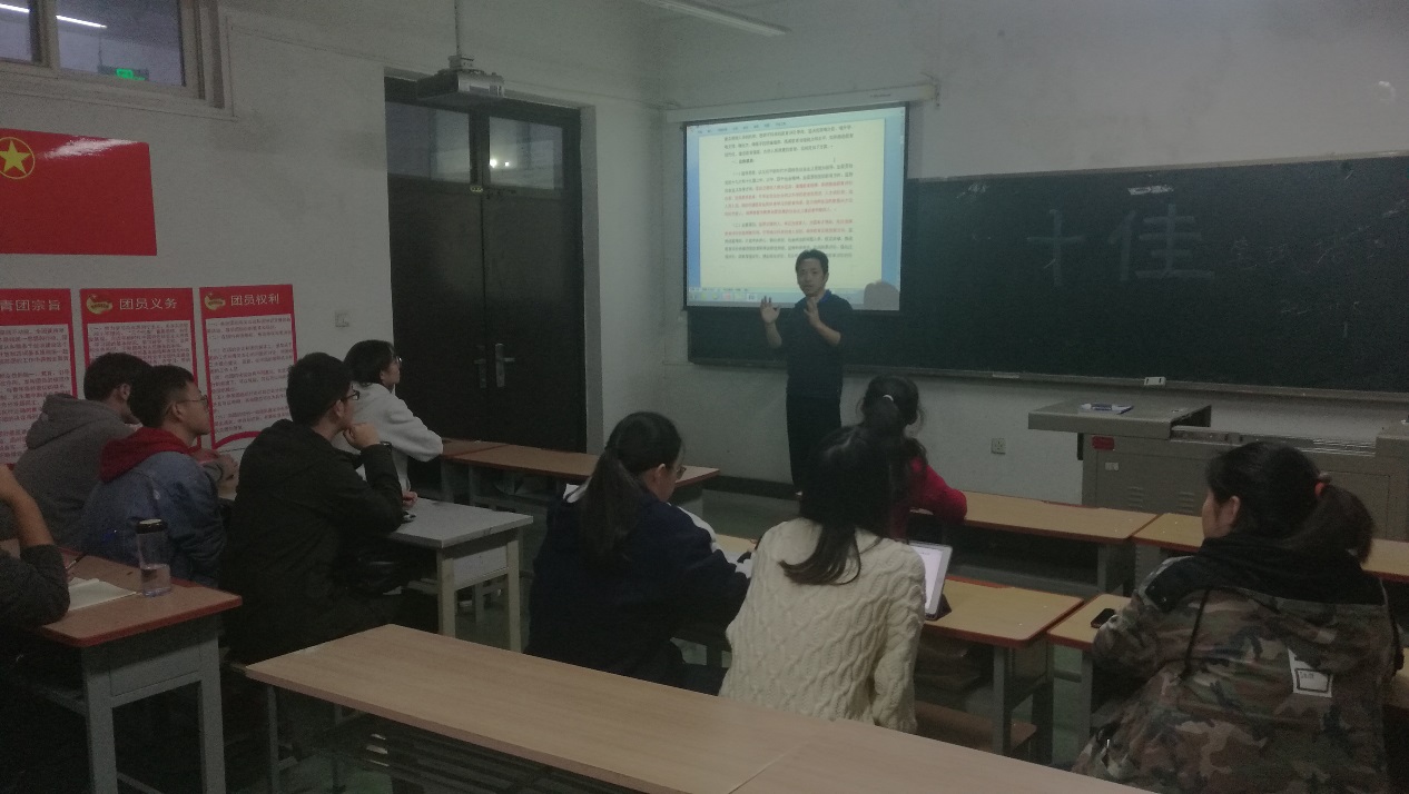 入围2019-2020学年十佳大学生笔试阶段的学生进行集中笔试前培训,由2017级辅导员薛鹏老师主持,张晖老师主讲,并邀请2018-2019学年十佳大学生获奖人阚红梅分享自己的笔试经验,入围2019-2020学年十佳大学生笔试阶段的汪思祎、王迈新等8名学生参加。