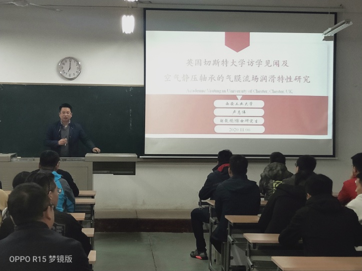 在工2-504召开了题为“英国切斯特大学访学见闻及空气静压轴承的气膜流场润滑特性研究”的学术讲座。本次学术讲座由足球投注网站
