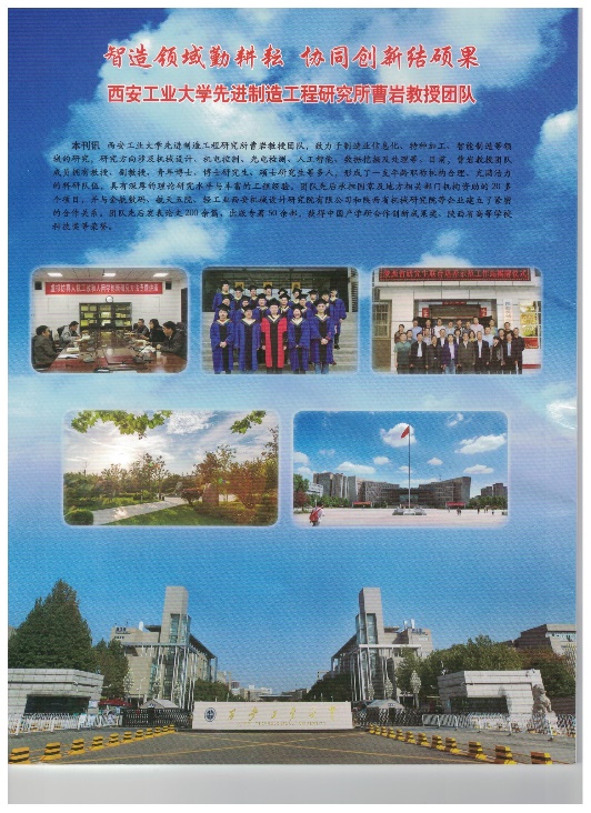 近期,西安工业大学先进制造工程研究所曹岩教授团队再次荣登国家重点刊物《中国科技产业》封底,针对其团队领域、研究方向、团队成员等信息进行了详细的介绍。