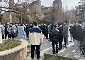 26日半夜12:05,我接到隔离考场组长冯灏老师的电话,他强调:“这个考场特殊,都是隔离学生,要穿防护服,是否愿意接受任务?”我愉快的接受了,心理暗暗窃喜。早6:00起床,外面已白雪皑皑,6:50到达教一楼做各项准备。我们像医生一样穿上防护服,将学院和姓名写在背上,在中午13:00前,不吃、不喝、不上厕所。短暂的午饭时间过后,继续穿上防护服,监考,给试卷消毒,封装试卷,一直到20:30才走出教一楼。