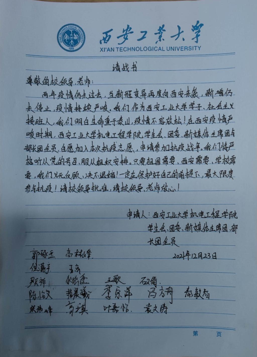 这场战疫,让我体会了学生们带给我的感动:主席团成员高琪率领全体团学干部撰写志愿者请战书,用所有人的亲笔签名将“战时有我”四个字深深地刻在我的心里;为顺利完成核酸工作,学生们积极报名志愿服务,主动帮我们维持核酸现场秩序;为呈现一场精彩的线上表演,团学干部和我一起反复调试设备、完成直播连线;因为疫情原因,生病学生吴亚梅看出我无法陪她进入医院的焦灼,她说道:“老师,您不要进去了,我可以。”她感受到了我在医院外等待长达六小时以上的辛苦与付出