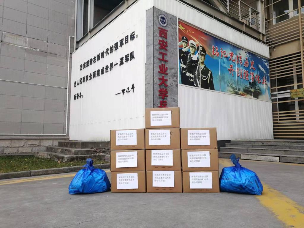 研究生校友谢鹏辉的企业陕西顺晟鑫隆机电有限公司及西安保发牧业有限公司,心系学校疫情防控工作,向我校捐赠10箱消毒湿巾、2000个一次性医用口罩,缓解了学校抗击疫情工作的压力。