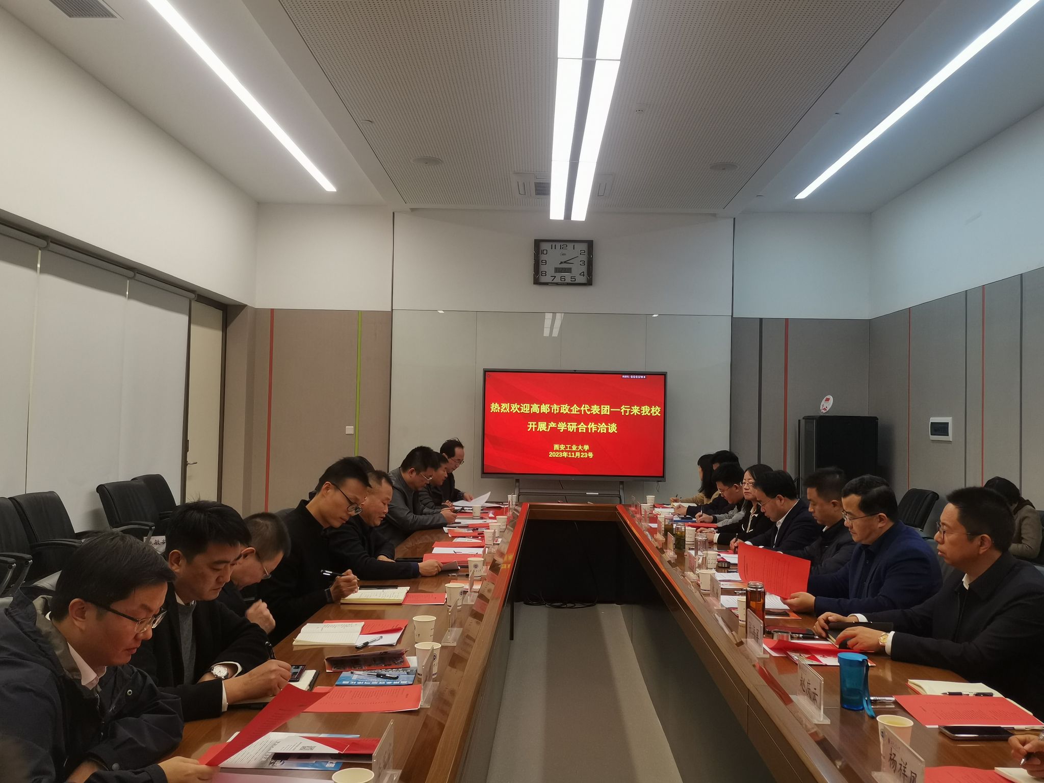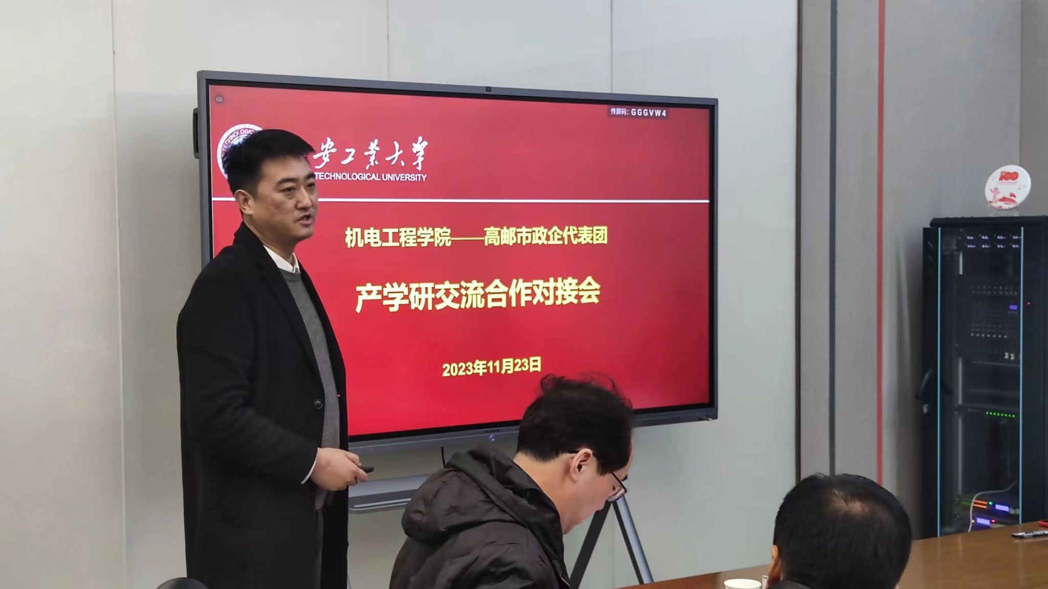 梁闪慧致欢迎词,对高邮市政企代表团的到来表示热烈欢迎,并详细介绍了学校发展史、科研整体情况,并希望以本次活动为契机,进一步加深双方了解,拓展合作领域,发挥西安工业大学在科研、人才培养等方面的优势,助力高邮市经济社会高质量发展。