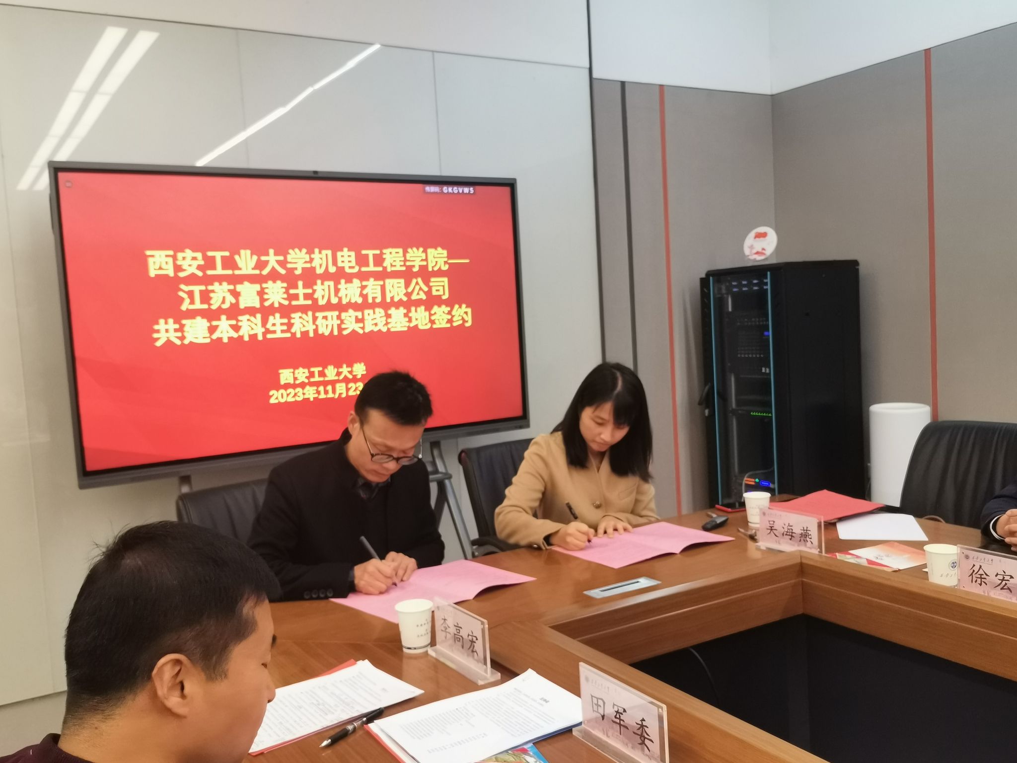 与汤庄镇人民政府签订校企产学研合作协议,并与江苏富莱士机械有限公司签订共建本科生科研实践基地建设协议,积极探索有效合作的创新体制新机制,为学院和地方在合作互动中取得共进双赢揭开新篇章。