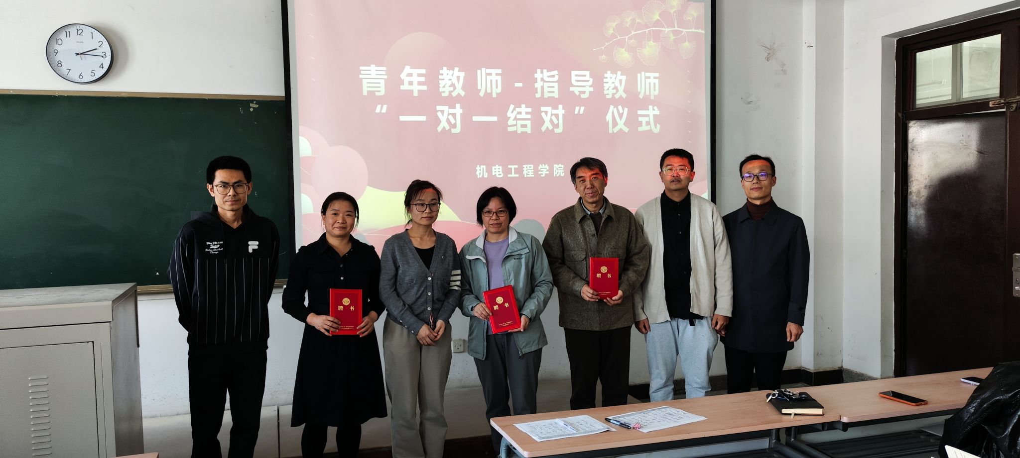 随后,学院书记程新峰和院长王洪喜共同为“结对子”的新老教师颁发了聘书。聘书的颁发不仅是对教师们辛勤工作的肯定,更是对他们未来工作的期待和信任。在颁发聘书的过程中,新老教师表示将携手共进,以更高的标准要求自己,不断提升教育教学水平,为审核评估工作贡献自己的力量。同时也将以更加饱满的热情投入到师德师风建设中。