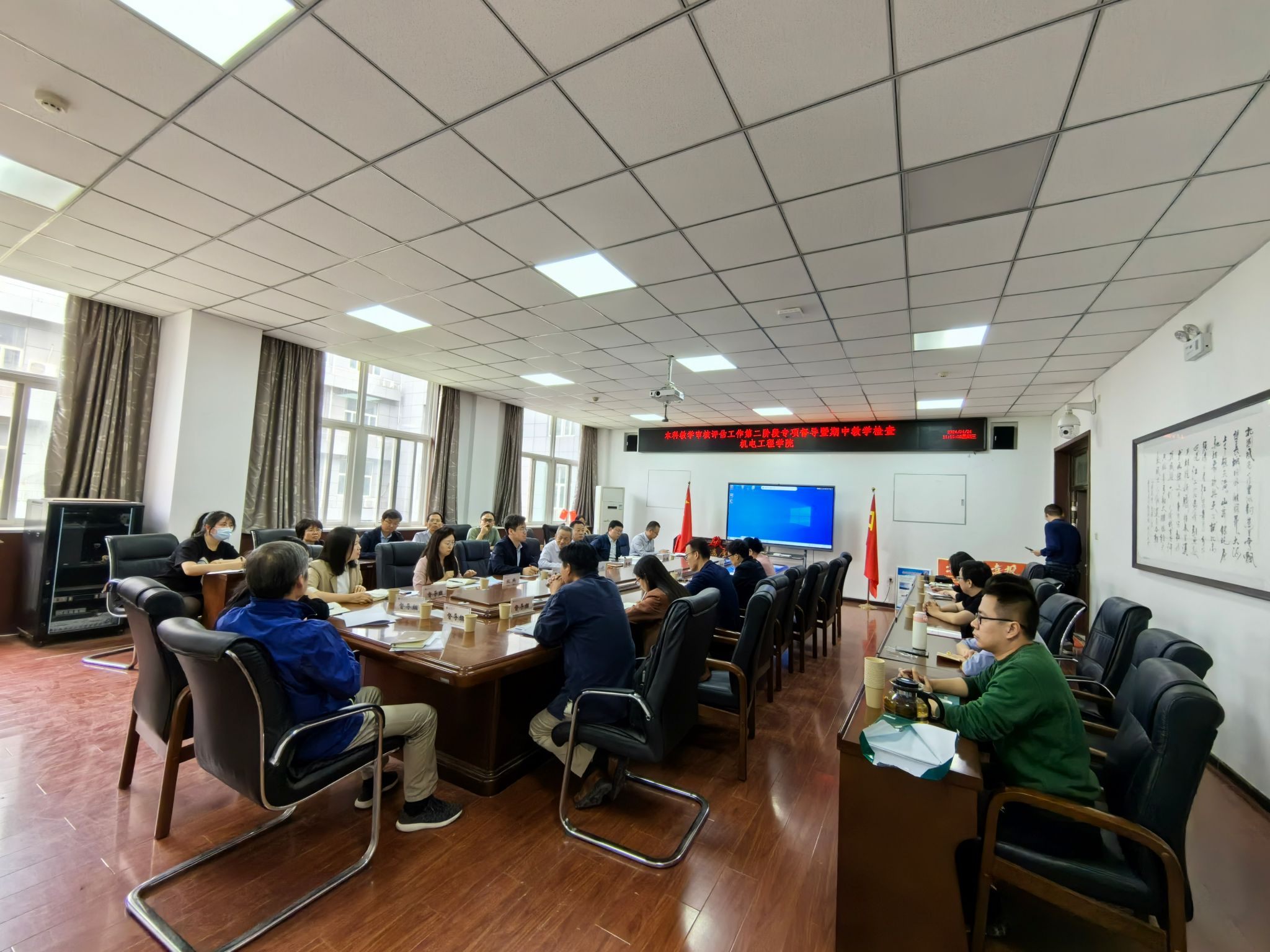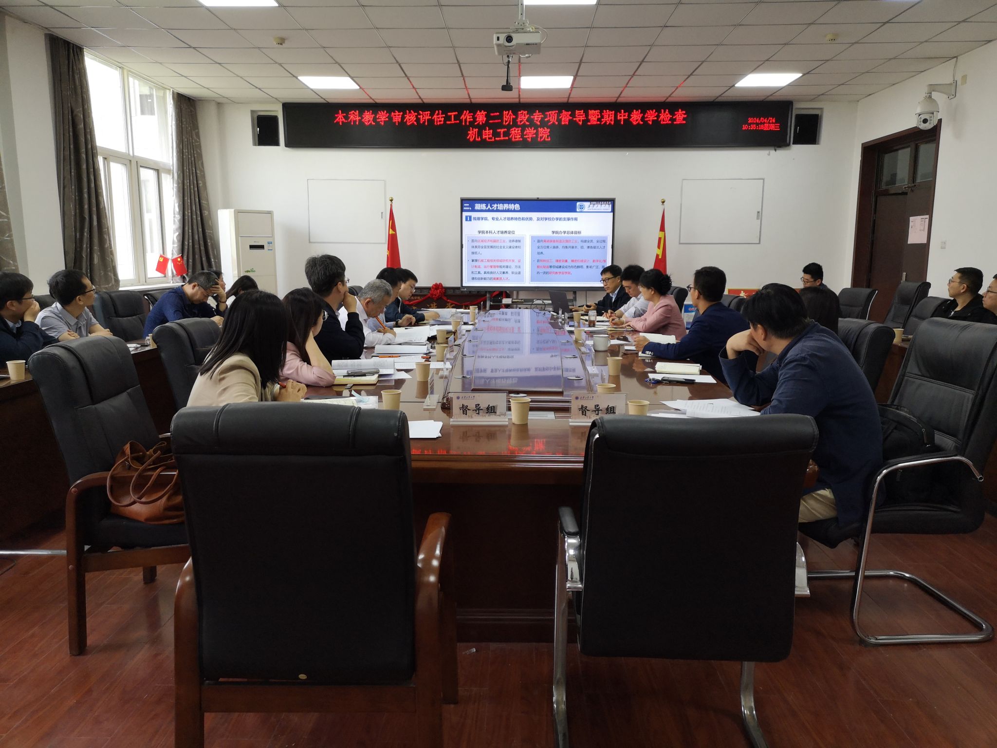 。本次评建工作开展情况督导与教学运行情况检查由听取汇报及听巡课组、现场检查材料组、师生座谈组共三个工作小组并行开展。