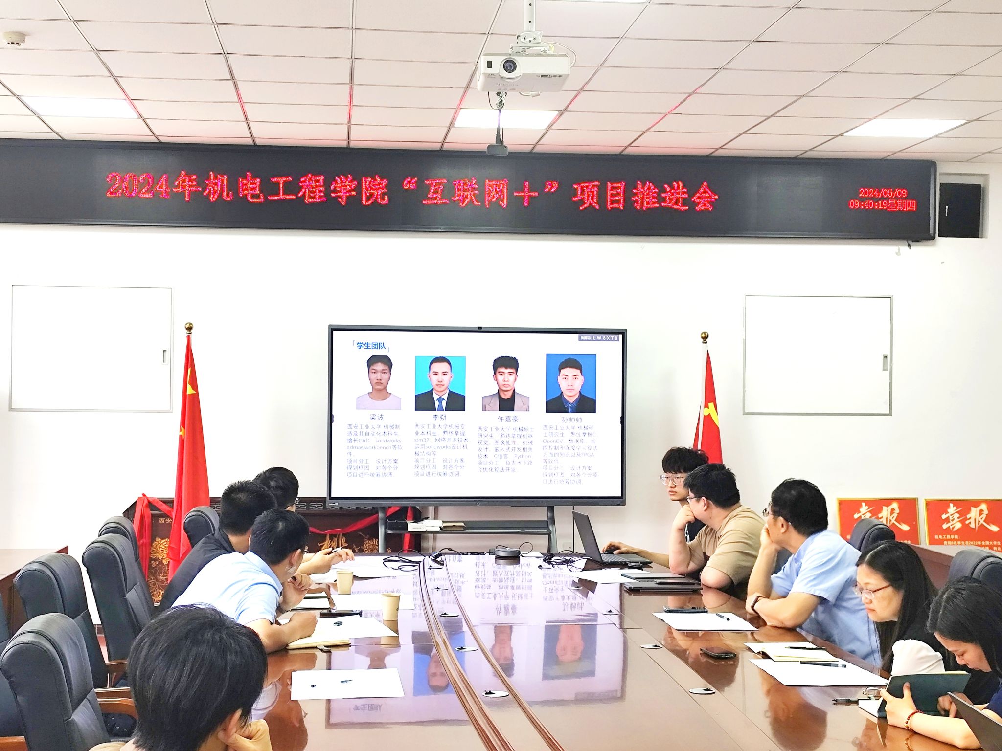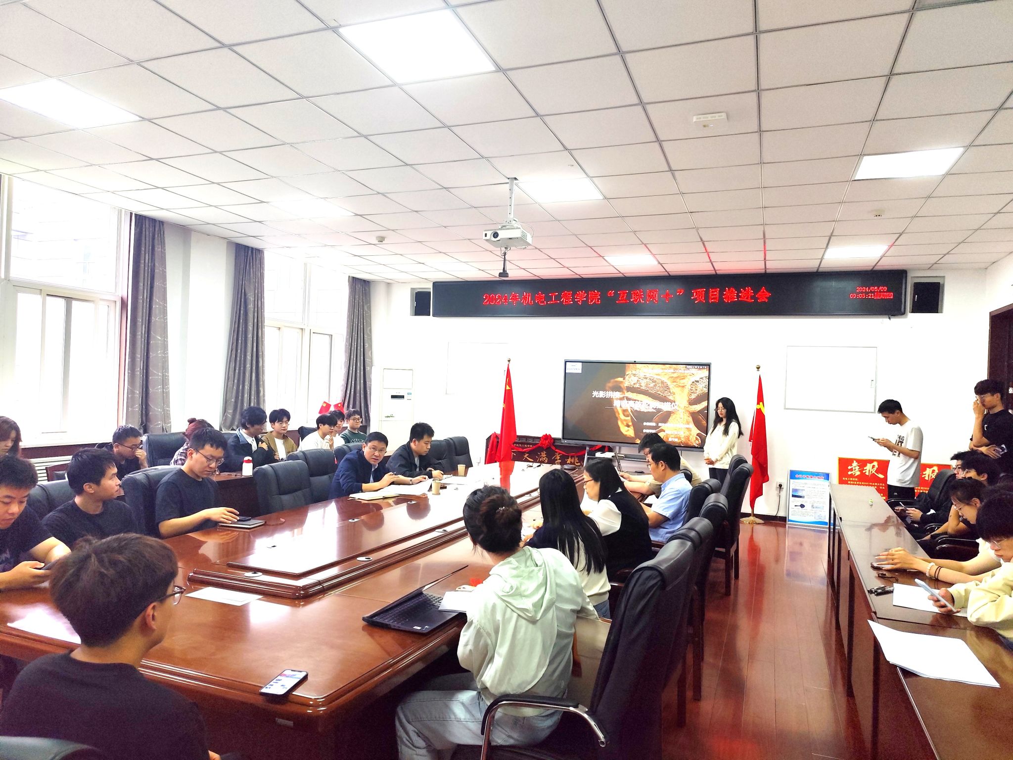 中国国际大学生创新大赛院级比赛情况,随后王洪喜表示学院非常重视此项竞赛,深度挖掘学院师生的潜力和学科优势,力争在本届比赛中再创佳绩;学院重点项目师生汇报了项目推进情况、迫切需要解决的难点等。