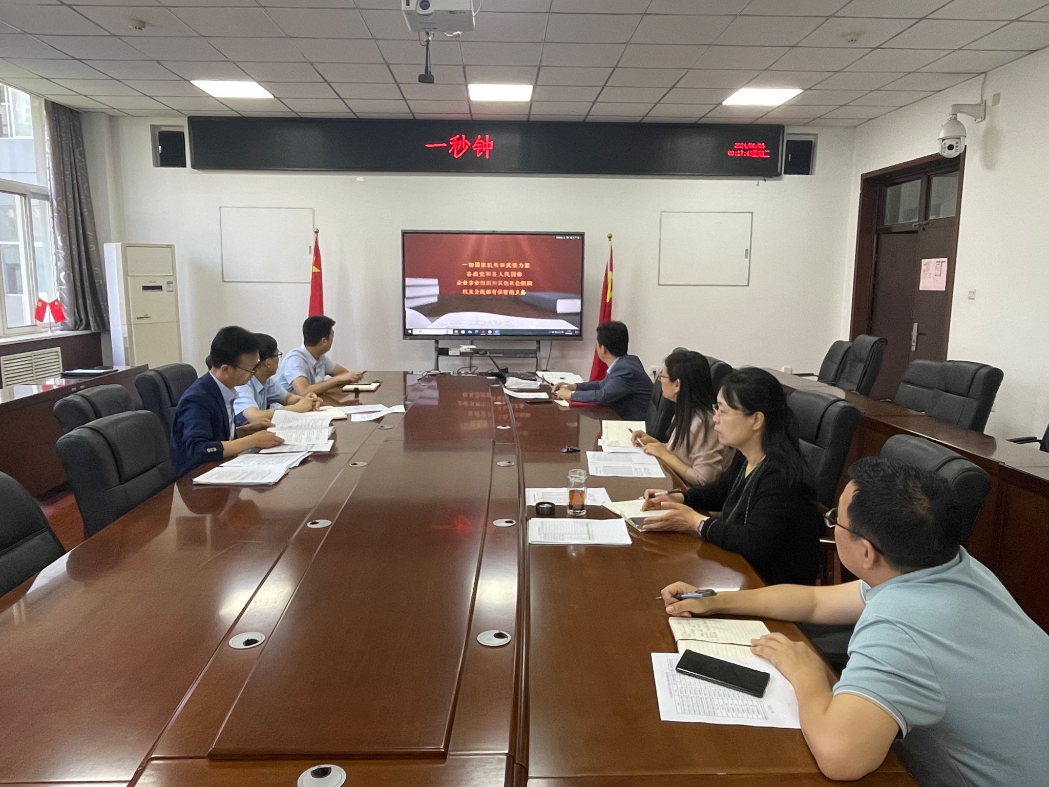 会上,集中学习了新修订的《中华人民共和国保守国家秘密法》,观看了国家保密局2024年保密公益宣传片《一秒钟》。