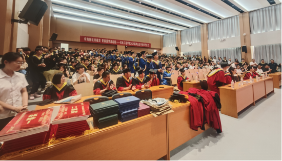 学院领导、院学位委员会委员为毕业生逐一正冠拔穗、颁发学位证书,并合影留念。毕业生身着学士服,迈着自信的步伐依次上台,与导师们亲切握手,接受这份特殊的祝福,年轻的脸庞上彰显着青春的希望和梦想。这一传统仪式标志着毕业生们学业的圆满完成,也象征着他们将带着知识与荣誉,开启人生新的旅程。