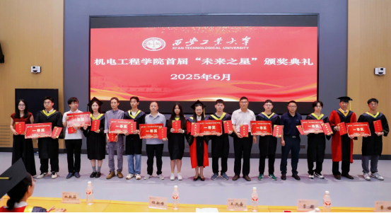 2025届毕业生学位授予决议。学院副院宣读“未来之星”机电89级校友毕业设计专项奖励评选中获奖学生名单,并对获奖学子进行表彰,学院领导为获奖师生颁发了荣誉证书。