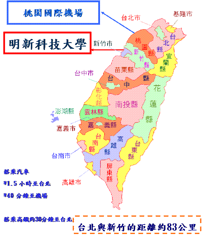明新科技大学是一所位于台湾省新竹县新丰乡的私立科技大学,简称明新科大,目前有4个学院、21个学系、9个研究所。明新地处新竹县新丰乡,占地逾三十公顷,依傍省道纵贯线,毗邻中山高速公路,交通十分便利。四周山青树碧,得天独厚,饶适莘莘学子进德修业。日间远眺,则台海怒涛澎湃,风云幻化;入夜俯临,则竹堑华灯万点,璨若繁星。学子于课余之暇,赏心悦目,诚可相得益彰,共同淬练创校以来一贯“坚毅、求新、创造”的校训。