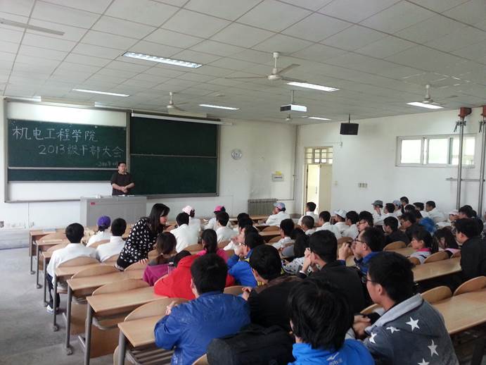 在教1-101召开了2013级干部大会。2013级辅导员及全体学生干部参加会议。会议由薛鹏老师主持。