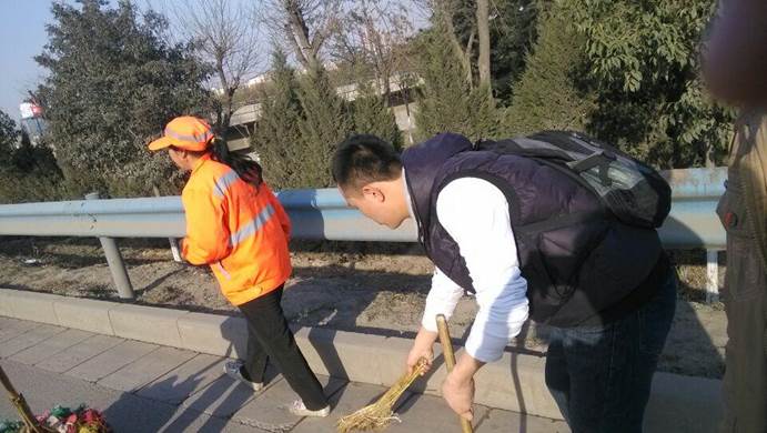 团委积极响应“雷锋月”号召,开展了“学雷锋”——慰问环卫工人主题活动。此次活动在学生会副主席陈嘉豪、组织部部长何紫雅、副部长肖刚几位主要学生干部的带领下,近20名同学到北辰立交认真开展活动。