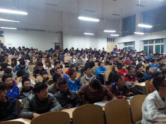 在教1-115和1-217举办优秀学子事迹报告及学习经验交流会。2012-1013学年先进集体和优秀学生代表做了先进事迹报告,交流了经验。2013级全体学生参加了会议。