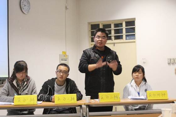“狭路相辩”辩论赛巅峰对决在教C203隆重举办。12级辅导员刘少姗老师,陈世磊,李月月,胡江昆等主要学生干部出席并担任本场辩论赛的评委。