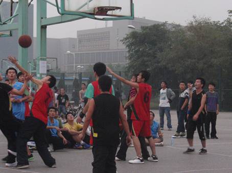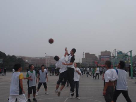 开赛前,体育部部长向各位工作人员讲明了细节,并强调了“友谊第一,比赛第二”的比赛规则。下午5点半,随着裁判的一声哨响,比赛正式开始。只见场上的运动员们争球、抢球、传球、投球、进球,个个气势如虹。“啦啦队”也不甘落后,呐喊声、加油声不绝于耳。