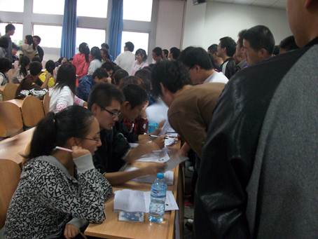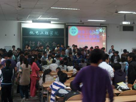 招新大会在一片热烈的掌声中开始后,各部门面试席前迅速排起了长队。严肃的面试官在认真听取新生们自我介绍后,继而提出各种问题探求新生们的态度和能力,最后通过会商初步选定本部门的入选人员。
