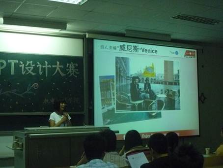 第二届PPT设计大赛正式拉开帷幕。15名参赛选手分成三组,以小组形式展示PPT。美丽而具有文化内涵的日本解说、中外著名而又浪漫的名城介绍、经典动漫人物分析,以及为纪念5·12汶川地震而制作的PPT,加上深情的朗诵和引人入胜的手语表演,参赛选手们为大家奉上了一场又一场无与伦比的视听盛宴。