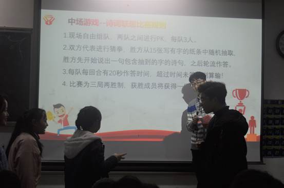 在一切准备工作完备之后,本次演讲比赛正式开始。通过前期的初赛,进入本次决赛的共有来自不同院的10位佼佼者。首先是经管学院的罗婉戈同学的演讲,优美的播音员式嗓音以及骨子里透出的演说家的身段征服全场。接下来的每位参赛选手都富有激情、具有创意,听着心潮澎湃、鼓舞斗志,感染了在场的每位嘉宾及评委。中场活动是一次参赛选手与评委的互动,以“飞花令”的形式展开,原本静谧的赛场变得活跃起来,让每位参赛选手也都能够平复自己紧张的心情。