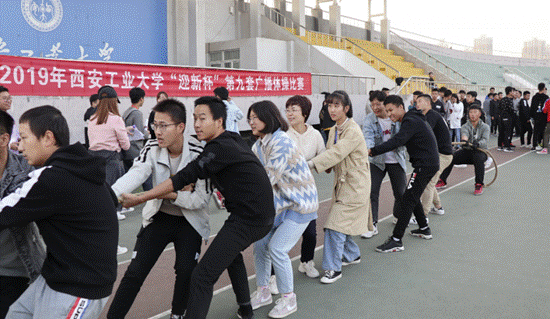 于西安工业大学未央校区田径场举办以“千禧谱芳华,筑梦新时代”为主题的迎新趣味运动会,出席本次活动的嘉宾有院党委书记路金龙、党委副书记姚敏茹、党委委员张晖、团委书记王晶、团委副书记许格宁以及各年级辅导员和班主任。