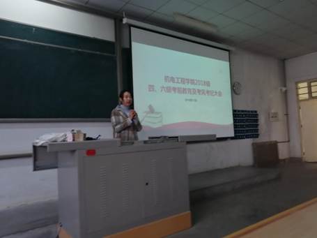 于教1-101成功召开了2018级四、六级考前教育及考风考纪大会。出席本次会议的有2018级辅导员王晶、许格宁2018级全体学生参与了本次大会。