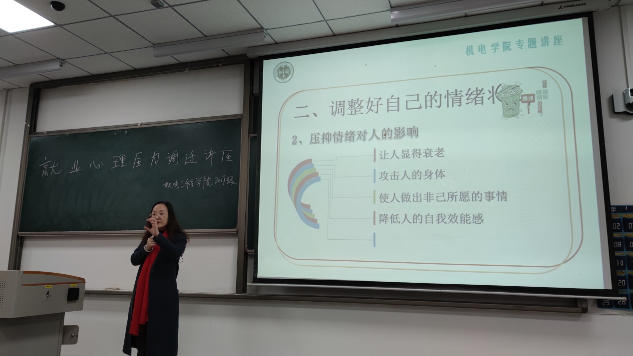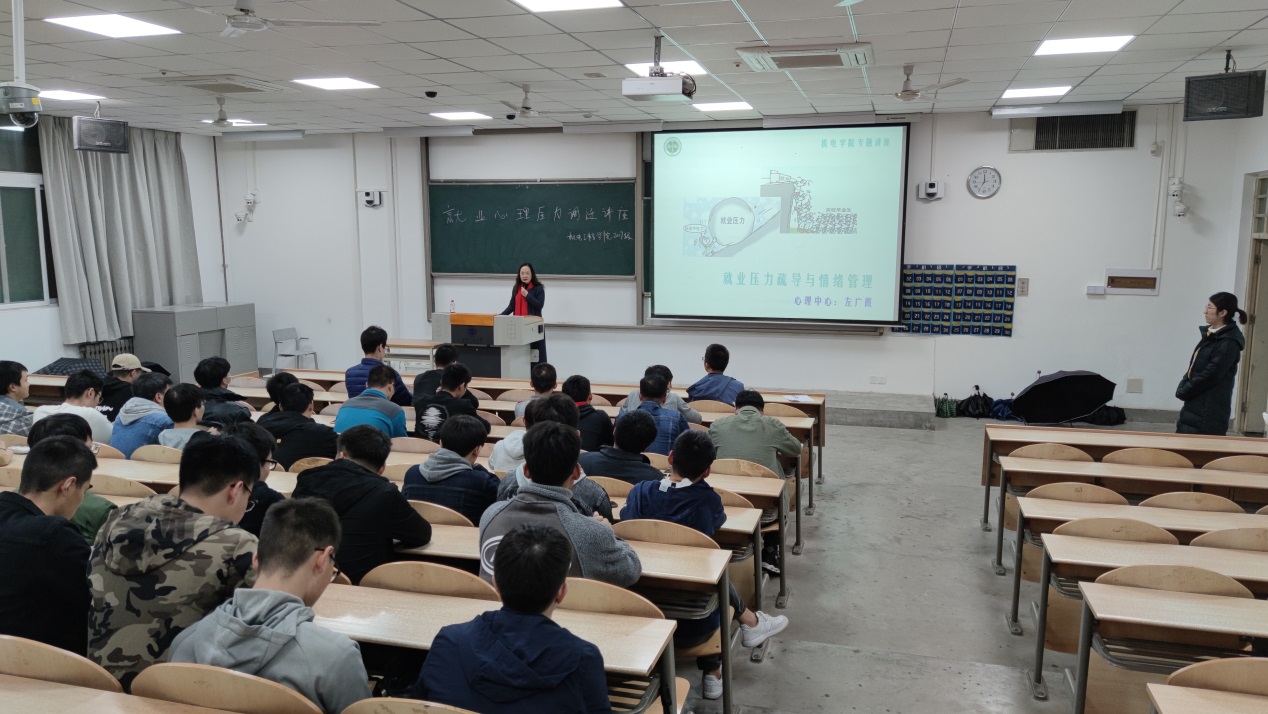 共同举办的就业心理压力调适讲座在教1-102顺利举行,本次讲座由学校心理中心左广霞老师主讲,足球投注网站