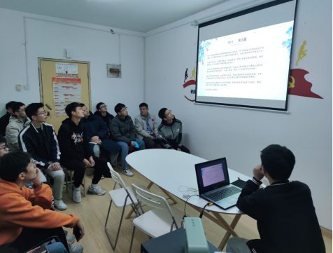 接着是2019级徐玮同学介绍了自己备考英语六级的经验。他分别从听力、阅读、写作翻译、应试经验四个方面展开介绍。听力、阅读部分他根据不同题型针对性地给出了一些解题技巧。分享过程中他指出了翻译和作文两部分是六级考试中的重点,并着重介绍了这两个部分学习的经验方法。他强调在平时复习中应该多积累自己的词汇量,学会用一些高级的表达方法。在保证不跑题,单词拼写正确,以及卷面整洁,字体工整的同时,摒弃一些简单句,将主动思维改为被动思维,通过从句的形式使一个句子变得饱满,再加上一些较为高级的逻辑词的运用,使得文章饱满且逻辑思维缜密。