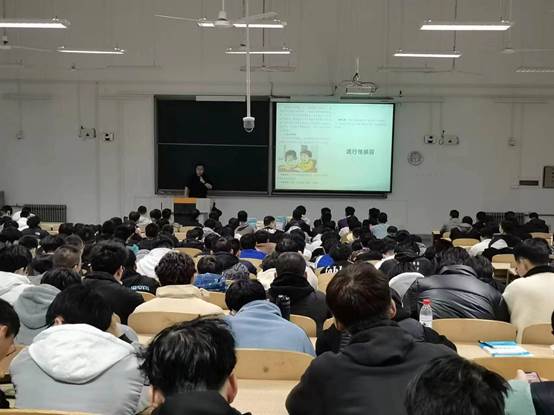 接着,薛老师讲到新学期的学习安排和诚信考试。近期是期末考试周和四六级考试,强调要诚信考试,认真学习课程专业知识,无悔青春。王老师也通过观看征兵宣传片的方式,用视频更直观形象地激起了每个学子的火热爱国情。