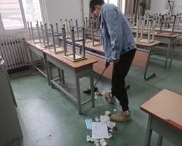 活动过程中,同学们进入工科楼2个教室,整理摆放桌椅、擦拭走廊墙裙及桌椅、打扫地面卫生,为学院考研自习室布置黑板报。参与活动的同学不怕脏、不怕累,彼此间相互配合,细心的完成每一项工作,整个劳动过程有条不紊,充分展示了大学生吃苦耐劳、奋勇前行的精神面貌。