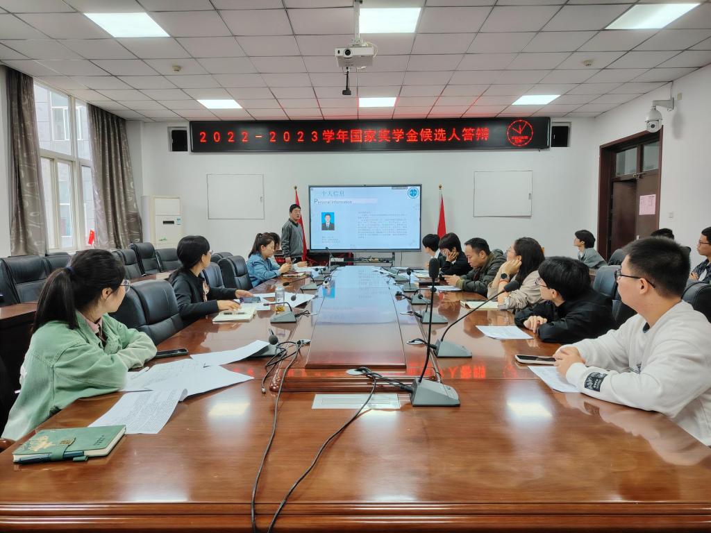 在工2-310举办了2022-2023学年度国家奖学金候选人答辩,本次会议的评审小组组长由党委书记路金龙担任,成员由副书记姚敏茹、全体辅导员、各年级学生代表组成。