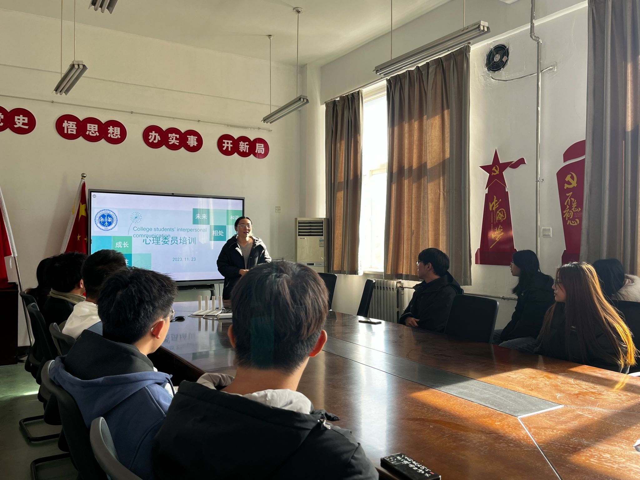 本次培训会,帮助心理委员明确了工作职责,了解了大学生常见心理问题的应对方法,加强了班级心理委员之间的交流,营造了良好的朋辈心理互助氛围,为培养出一支有心理学知识和素养的朋辈队伍打下了良好基础。