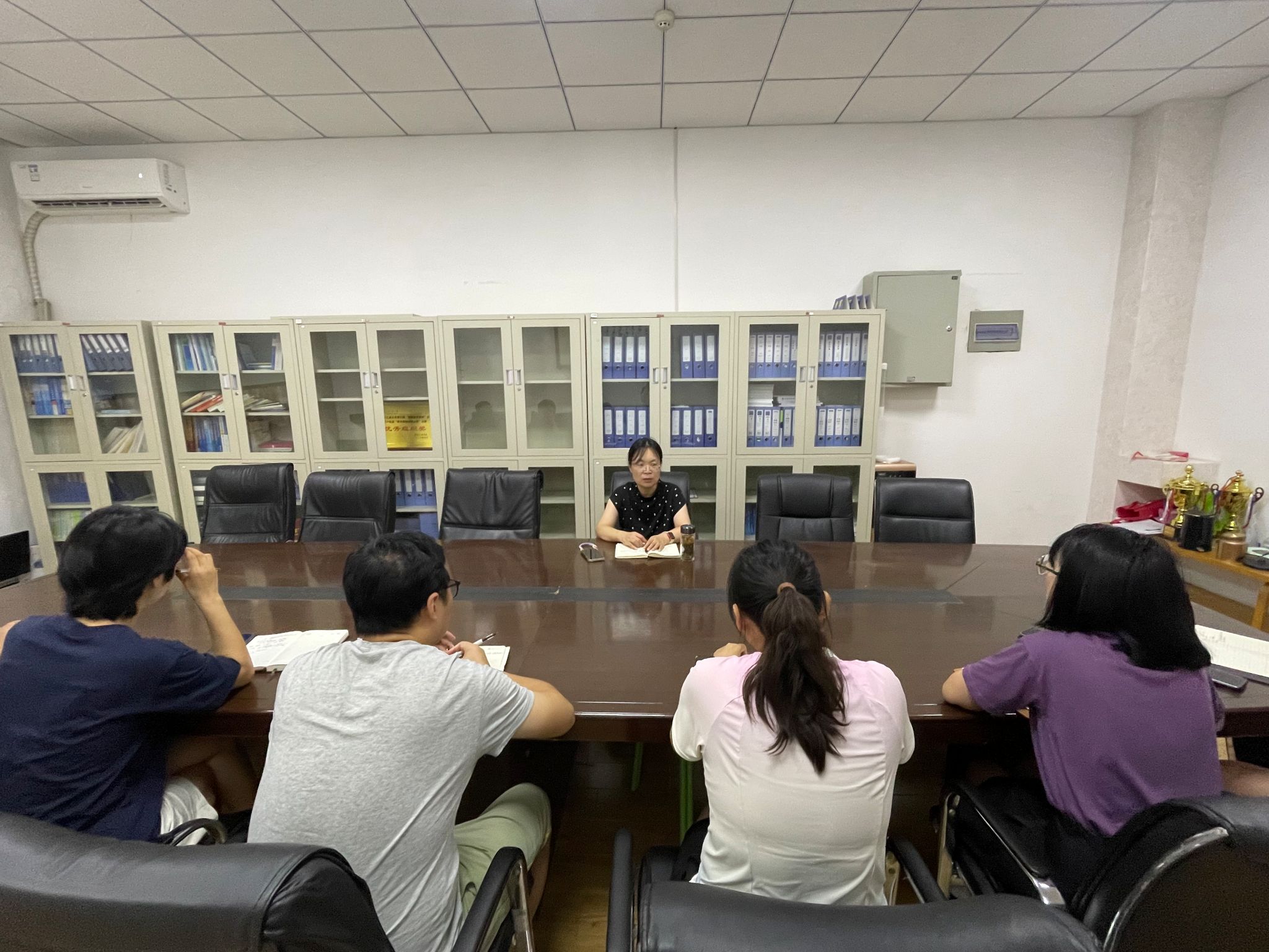 全体辅导员在工2-308室召开辅导员工作例会,学院党委副书记姚敏茹主持会议。