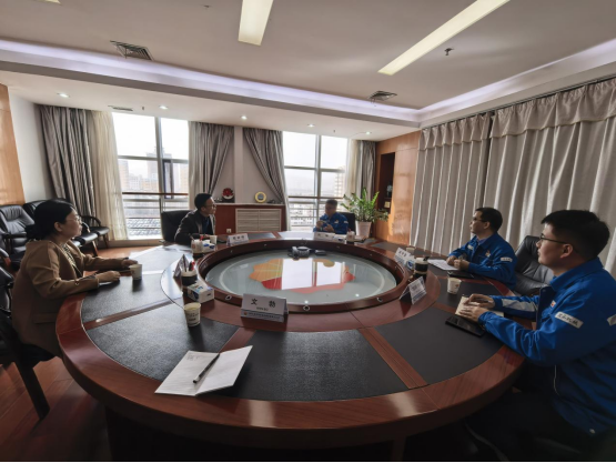 党委书记程新峰、党委副书记姚敏茹、辅导员文勃一行赴宝鸡石油机械有限责任公司开展访企拓岗、合作交流活动,宝鸡石油机械有限责任公司执行董事、党委书记张福、公司副总经济师人力资源部经理高守直、人力资源部一级高级主管杨广柱等热情接待。