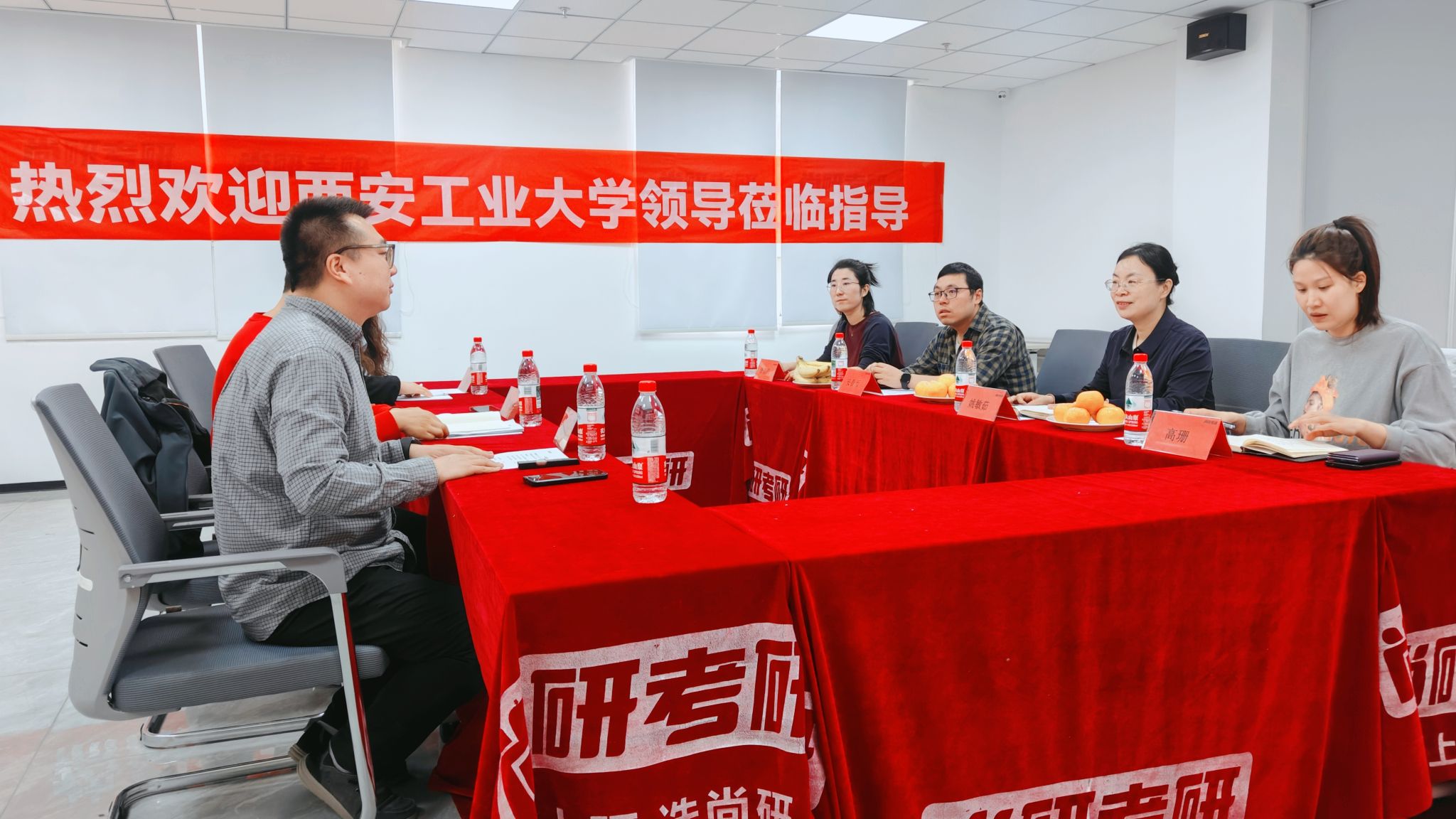 一行的到来表示热烈欢迎,并详细介绍了企业的基本情况。尚研考研作为尚学成教育集团的核心品牌,专注于考研辅导培训,拥有体系化的课程和专业化的资料,通过全维度的服务以及科学管理,在陕西设有30多家校区,服务覆盖所有本科高校及省内各地市区域,同时在多省区域设有直营和合作分校,深受大学生及青年群体信赖。企业在发展过程中,始终秉持着“助力考研学子成功上岸”的理念,不断优化教学服务,形成了独特的足球投注网站。在产品矩阵方面,不仅涵盖了考研公共课、专业课的辅导课程,还提供保研推免、复试调剂、大学同步学业规划等多样化的服务项目,满足学生不同阶段的需求。其核心优势在于强大的师资团队,教师全部具有研究生以上学历,且多数毕业于985高校,从业经验丰富,教学成果显著,学员口碑极佳。