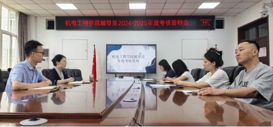 召开辅导员年度考核答辩评审会,学院党委书记程新峰、副书记姚敏茹以及全体辅导员参加会议。