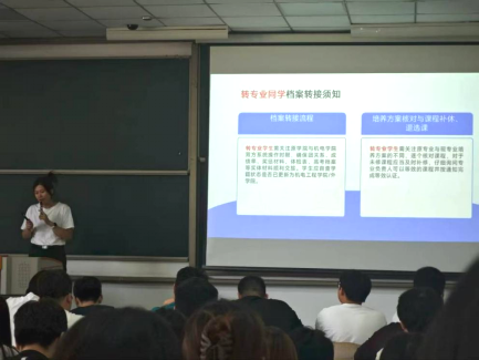大会详细介绍了奖助学金指标和评选规则,补考与学籍处理,学业警告、退学审核指标,介绍了第二课堂学分要求,党员发展要求以及保研资格,督促同学们认真完成学业。