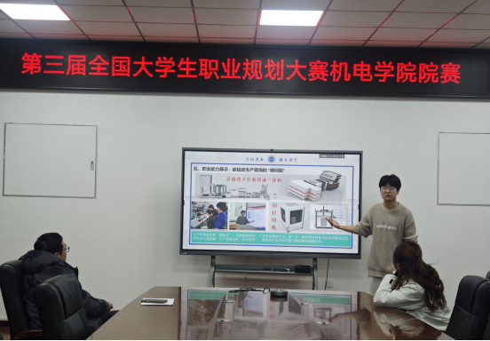 决赛答辩环节,既考察选手对职业目标的精准定位、发展路径的科学规划,也注重其科创经历与职业方向的契合度。选手们结合自身大学期间学习、工作、社会实践和科创经历做精彩展示:有的聚焦智能制造、工业机器人等行业趋势,将参与“全国机械创新设计大赛”、“大创项目”的经历融入职业规划,明确成为复合型技术人才的目标;有的瞄准校企联合研发领域,规划依托学院与兵器工业203所、中航动力等企业的合作资源,深耕专业技术攻关方向。评委针对选手规划中的短板精准支招,从职业认知、规划合理性、实践可行性、科创转化潜力等维度进行综合评审,为选手提供专业指导,鼓励学生以行业需求为导向深耕专业,为未来职业发展筑牢根基。